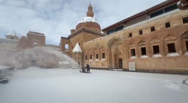 Osmanlı mimarisinin en önemli eserleri arasında gösterilen İshak Paşa Sarayı, kış aylarında da ziyaretçilerin ilgisini çekmeye devam ediyor. Kar yağışıyla birlikte ortaya çıkan eşsiz manzara, yerli ve yabancı turistlerin yanı sıra fotoğraf tutkunlarının da ilgisini çekti.