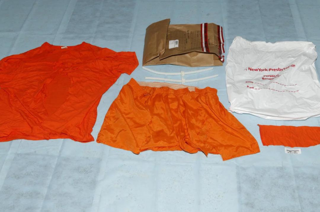 *Epstein’ın üstündeyken kesildiği ve daha sonra hastaneden kişisel eşyalar çantasında iade edildiği öne sürülen gömlek.