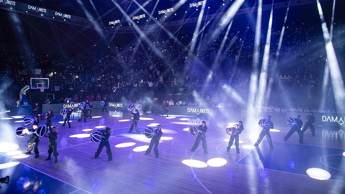 Açılış töreninde müsabaka öncesi basket atışları yapan Cumhurbaşkanı Şara, iki takımın oyuncularını selamlayarak, karşılaşma topunu imzaladı.
